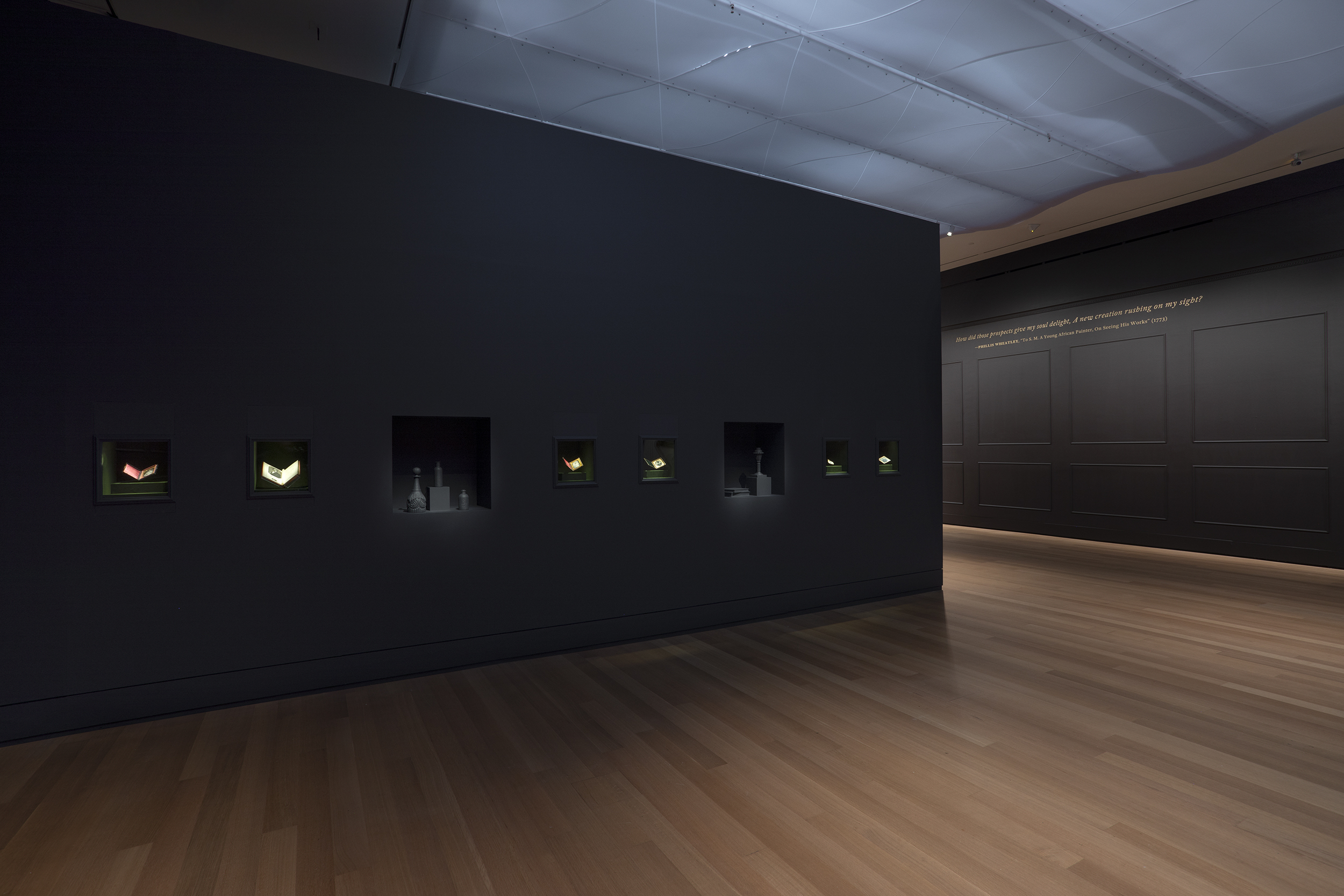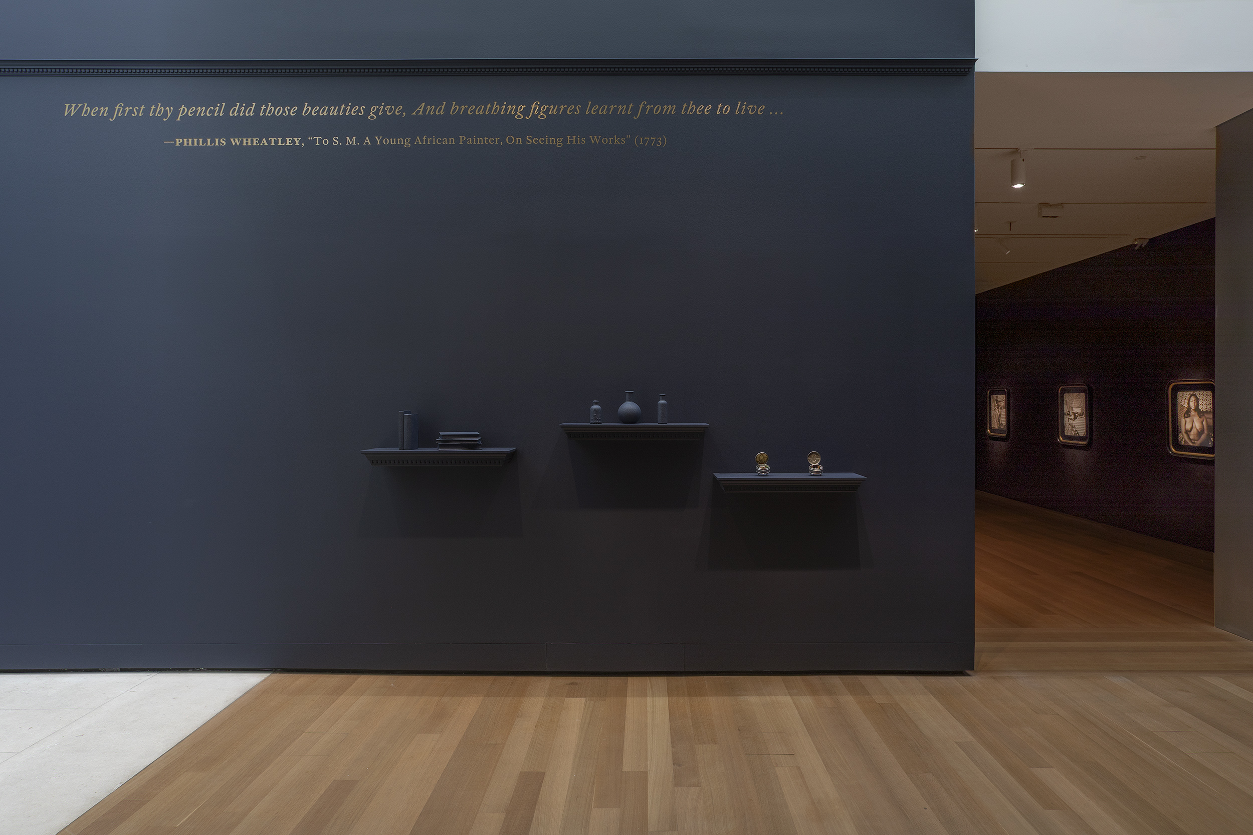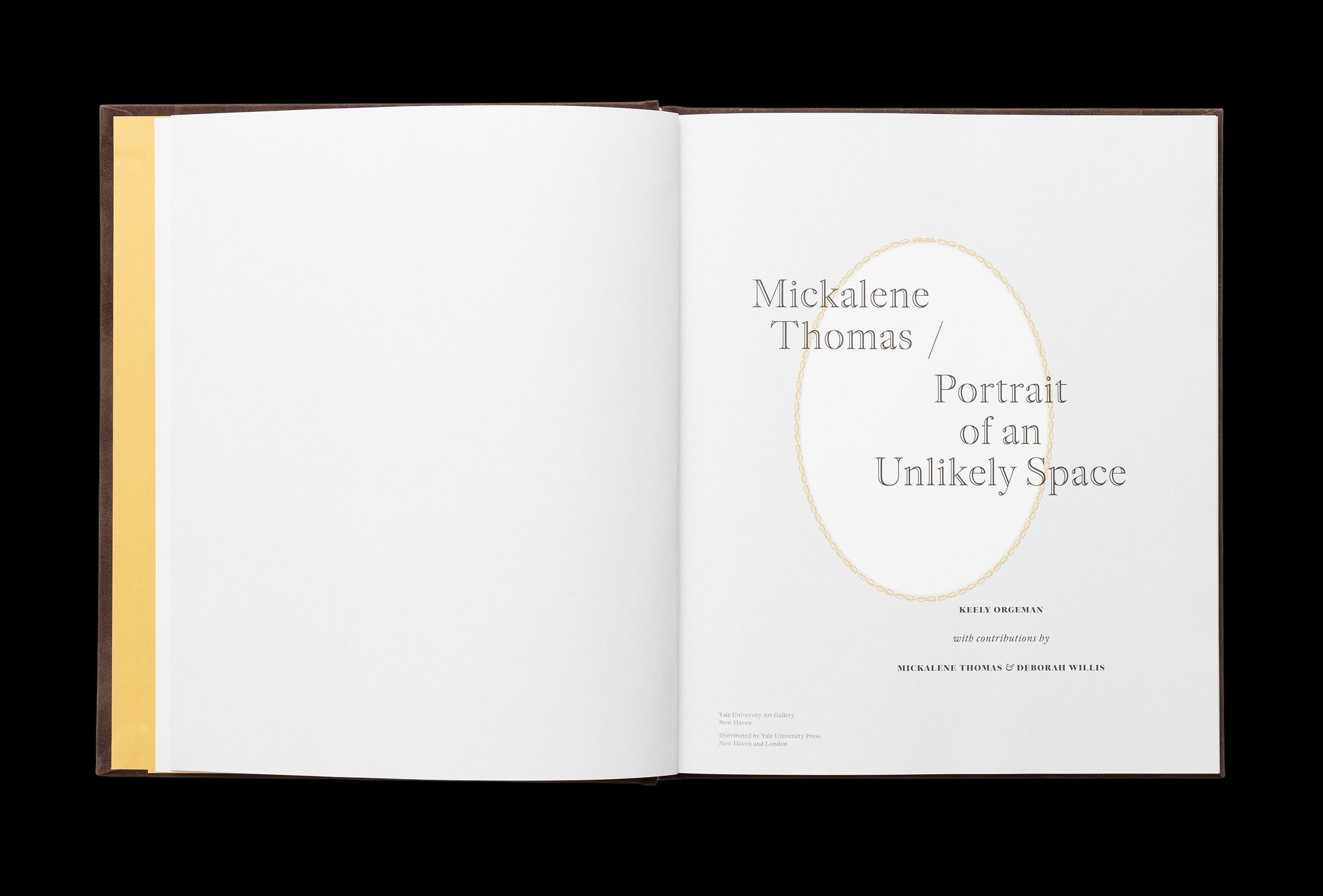 Polymode designed the exhibition catatalogue and graphics for Portrait of an Unlikely Space, a curated show by artist Mickalene Thomas and curator Keely Orgeman, comparing and contrasting early American portraits of Black women, men, and children—aside contemporary Black works. Her installation incorporates period-specific textile patterns and decorative elements to create a homelike environment reminiscent of the pre-Emancipation era. The publication and exhibition were designed together in tandem, as the images express later in the book.